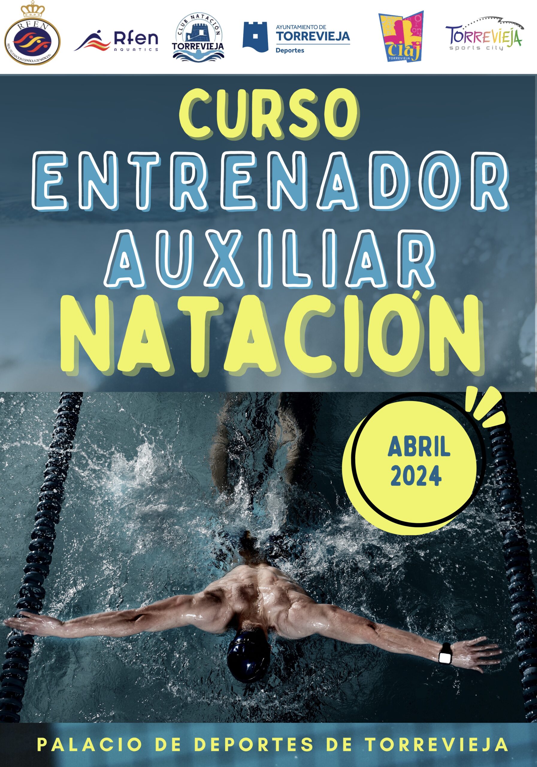 La Real Federación Española de Natación, a través de su Escuela Nacional de Entrenadores convoca el Curso de Entrenador Auxiliar de la RFEN en su fase común, fase previa para el acceso al curso de la fase especifica de las diferentes disciplinas como titulación federativa, organizado por el C. N. Torrevieja y con la colaboración de la Concejalía de Deportes del Ayuntamiento de Torrevieja, el cual se celebrará en Torrevieja, de acuerdo al siguiente Calendario: