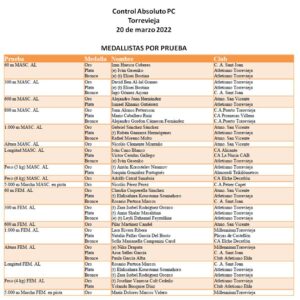 BUENOS RESULTADOS PARA LOS CLUBS TORREVEJENSES EN EL CONTROL ABSOLUTO FEDERADO QUE SE REALIZÓ AYER EN LA PISTA DE ATLETISMO DANIEL PLAZA