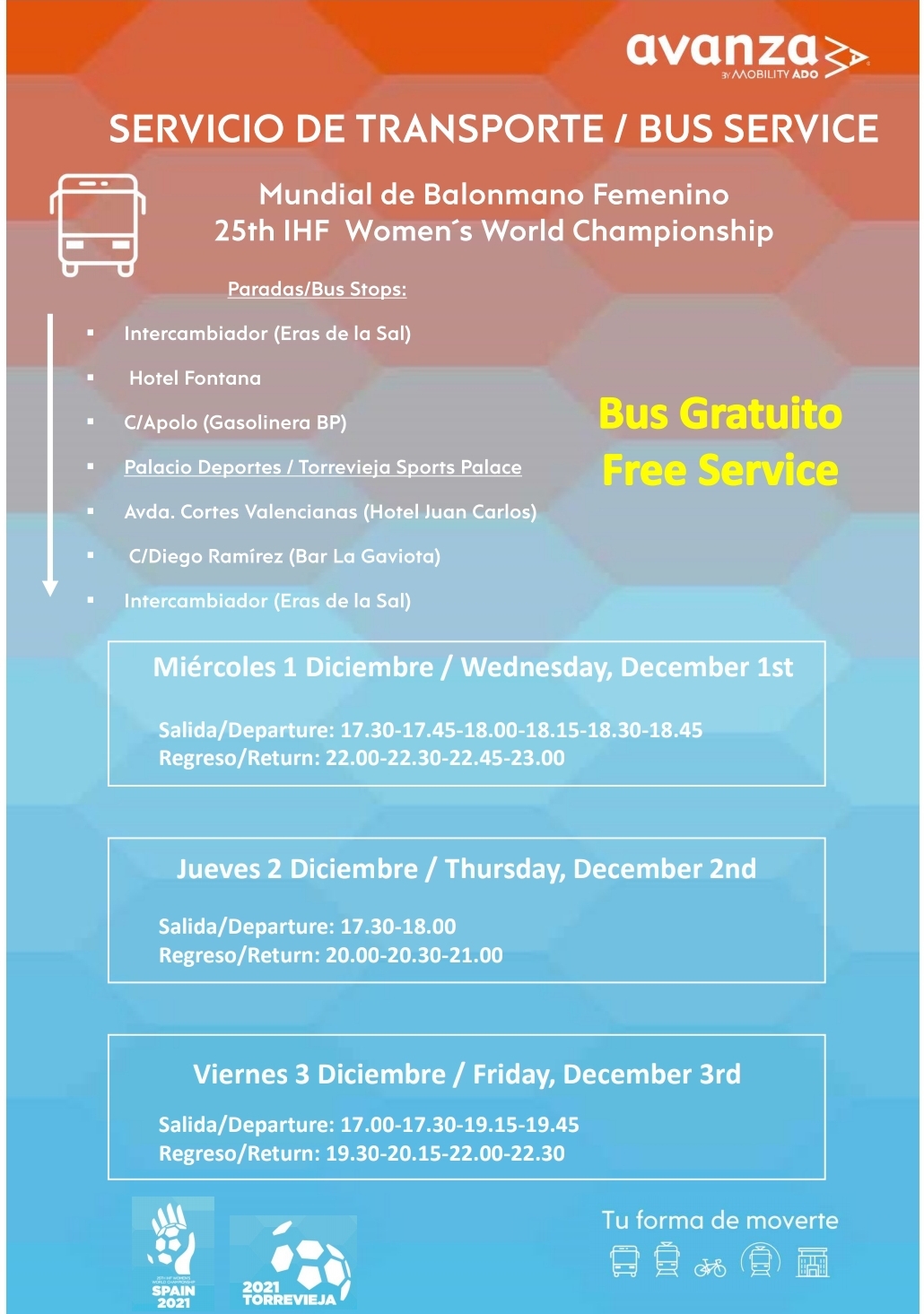 (Español) SERVICIO DE TRANSPORTE GRATUITO PARA ASISTIR AL MUNDIAL DE BALONMANO FEMENINO