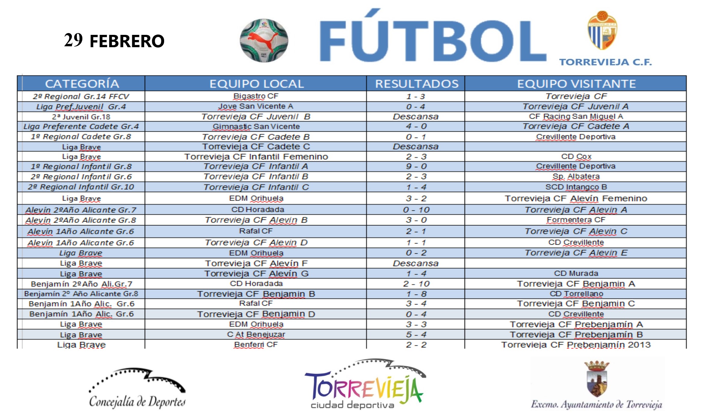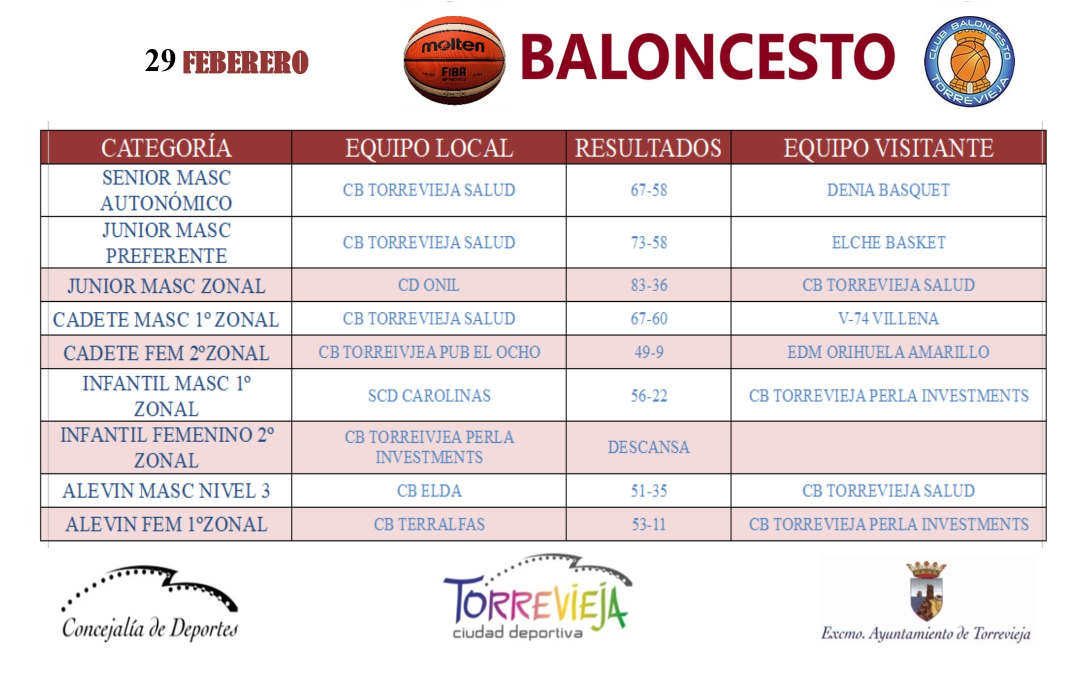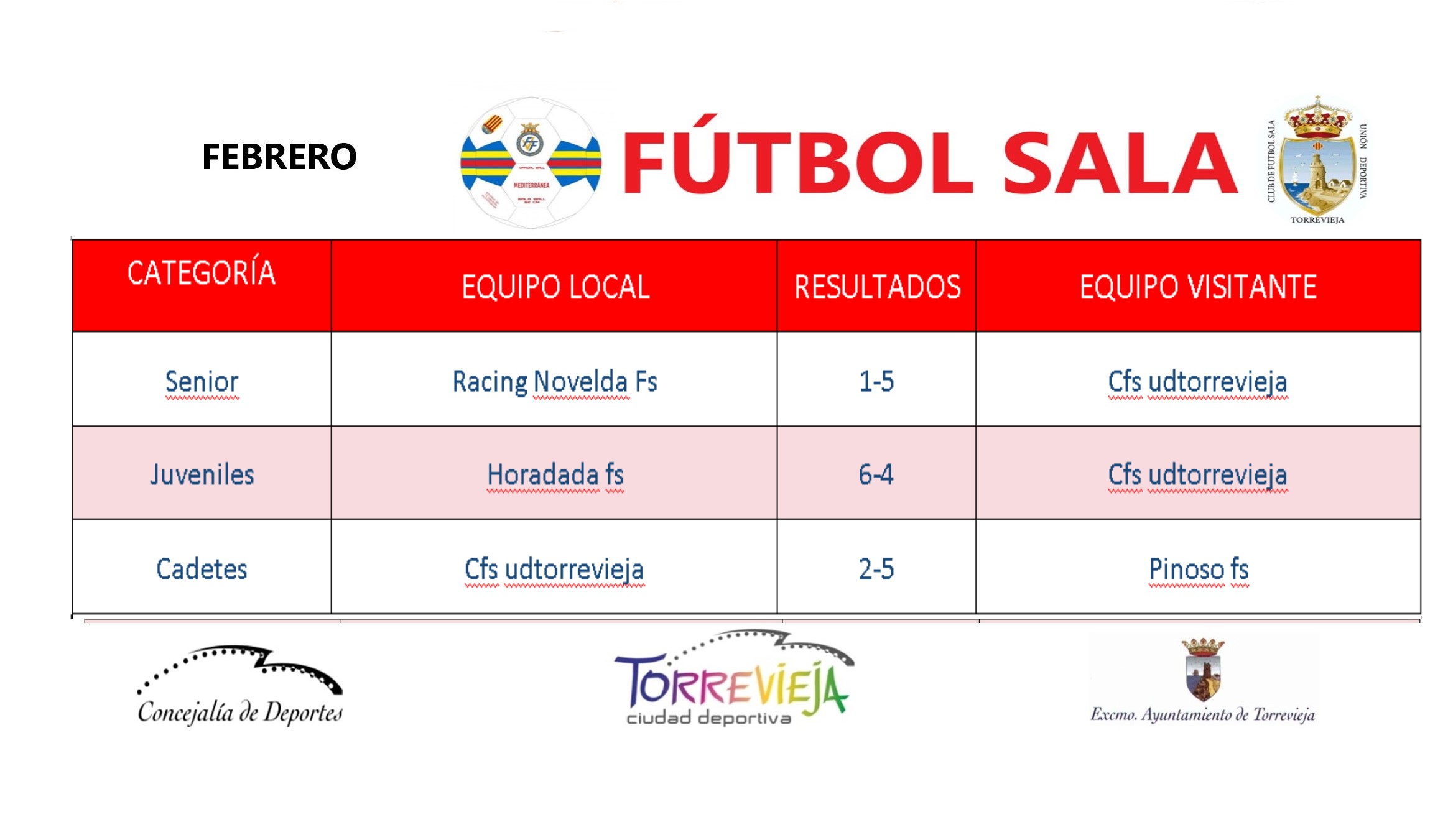(Español) Resultados deportivos del fin de semana 29 de febrero y 1 de marzo.